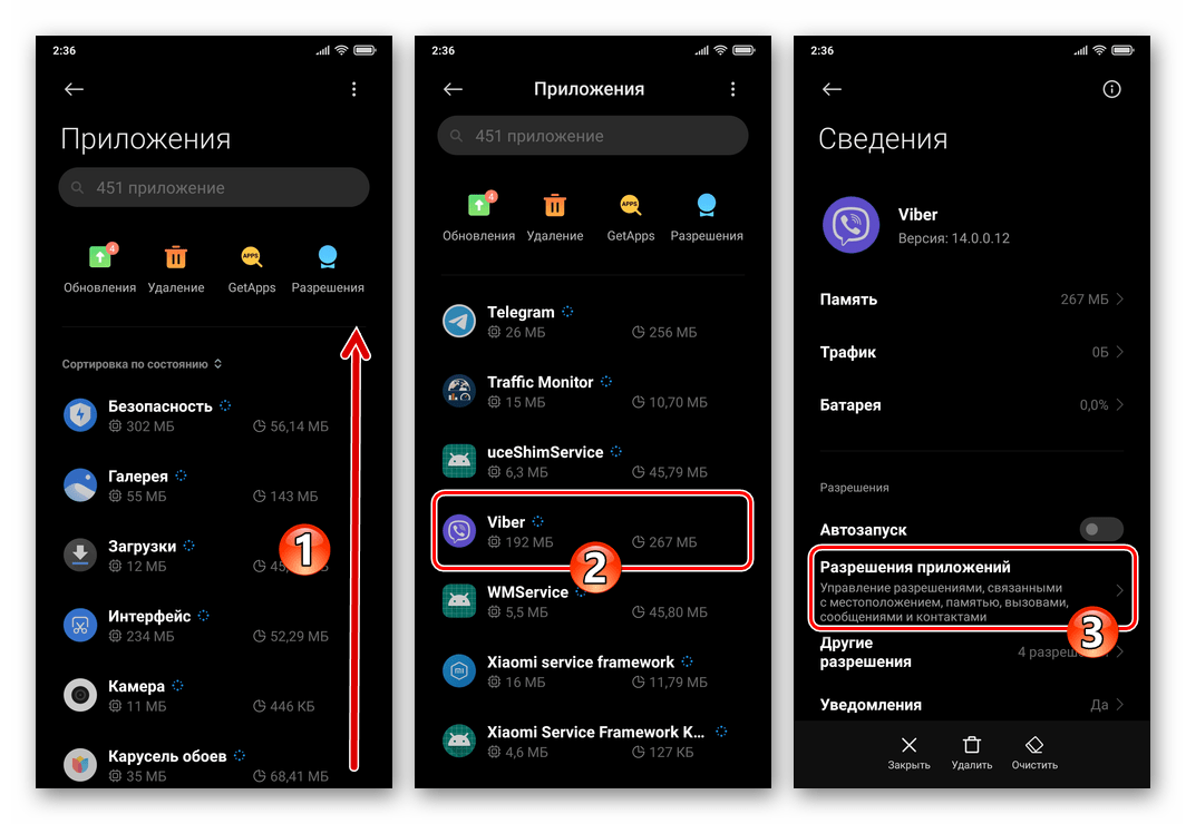 Найдите «Viber» среди программного обеспечения, установленного на вашем устройстве, нажмите на его название. На появившемся экране «Подробности» перейдите к «Разрешения для приложений».
