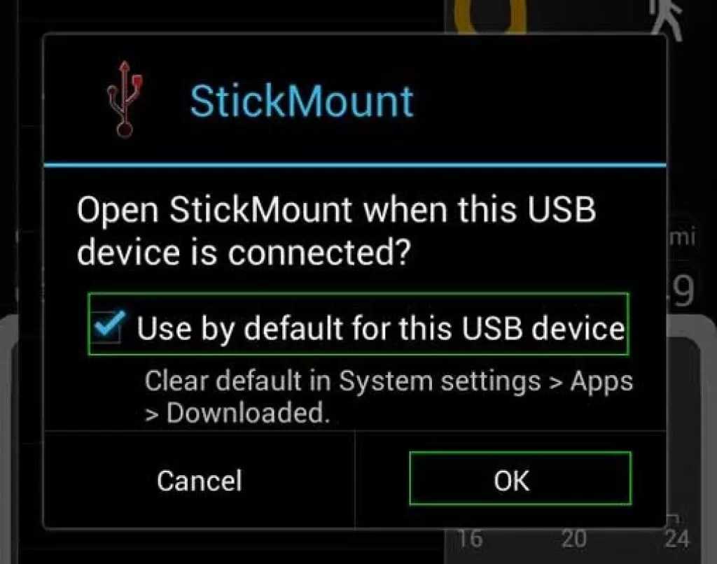 - Как только вы установите оба приложения, подключите один конец кабеля USB OTG к гаджету, а второй — к USB-диску. После чего увидите сообщение StickMount о том, что к Android подключен флеш-накопитель. Тапните по кнопке «OK» и StickMount откроет доступ к файлам на нем. Для этого вам нужно обладать «root» правами доступа на приложение StickMount. Это не удастся сделать, если вы не сделали заранее ROOT.