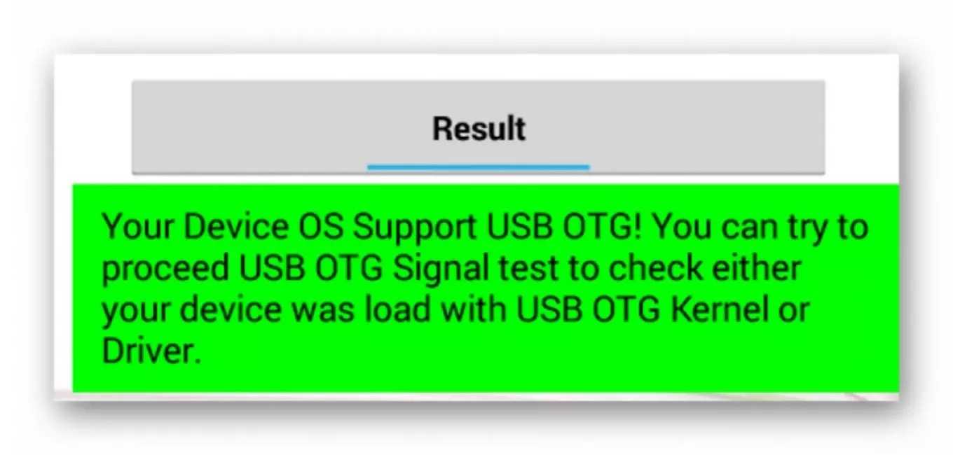 — в случае положительного результата, подразумевающего, что аппарат поддерживает технологию OTG.