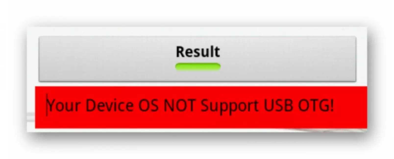 В случае, если ваше мобильное устройство функцию OTG не поддерживает — вы увидите следующее информационное окно: