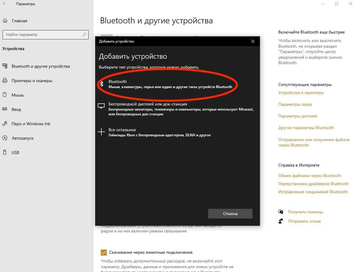 В появившемся окне выбираем Bluetooth. Мыши, клавиатуры, перья или аудио и другие устройства Bluetooth. Включаем Bluetooth на беспроводных наушниках.