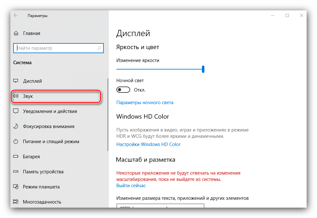 Затем с помощью меню слева перейдите к пункту «Звук».