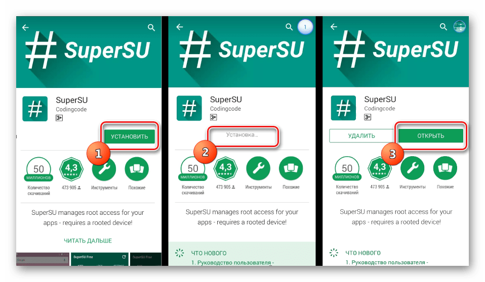 Установка СуперСУ из Плей Маркета — совершенно стандартная процедура, подразумевающая те же действия, что и любое другое Android-приложение при своей загрузке и инсталляции.