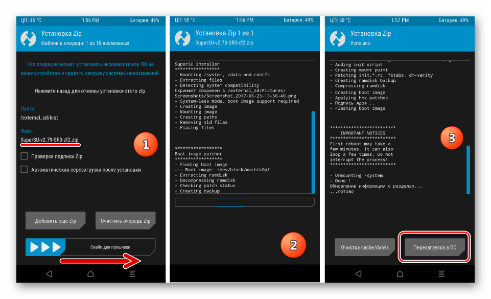 - О том, как прошивать дополнительные компоненты Android c помощью разных кастомных сред восстановления, рассказано в следующих статьях: