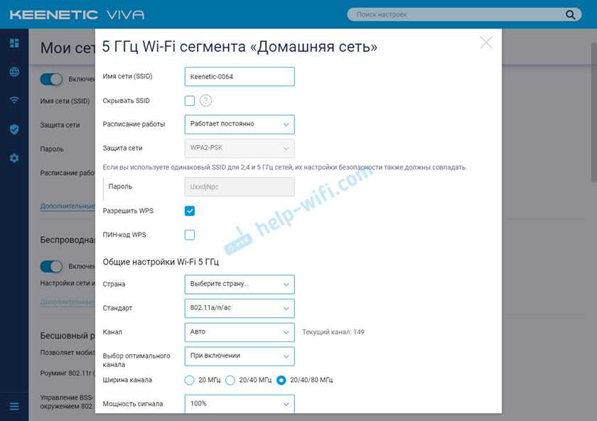 Настройки Wi-Fi 5 ГГц на роутерах Keenetic находятся в разделе «Мои сети и Wi-Fi» – «Домашняя сеть». Возможно вам пригодится инструкция по входу в настройки роутеров Keenetic.