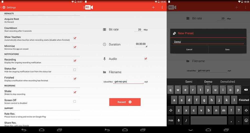 На Google Play есть множество программ, которые позволяют быстро создать видео с экрана. Рассмотрим тройку лучших приложений.