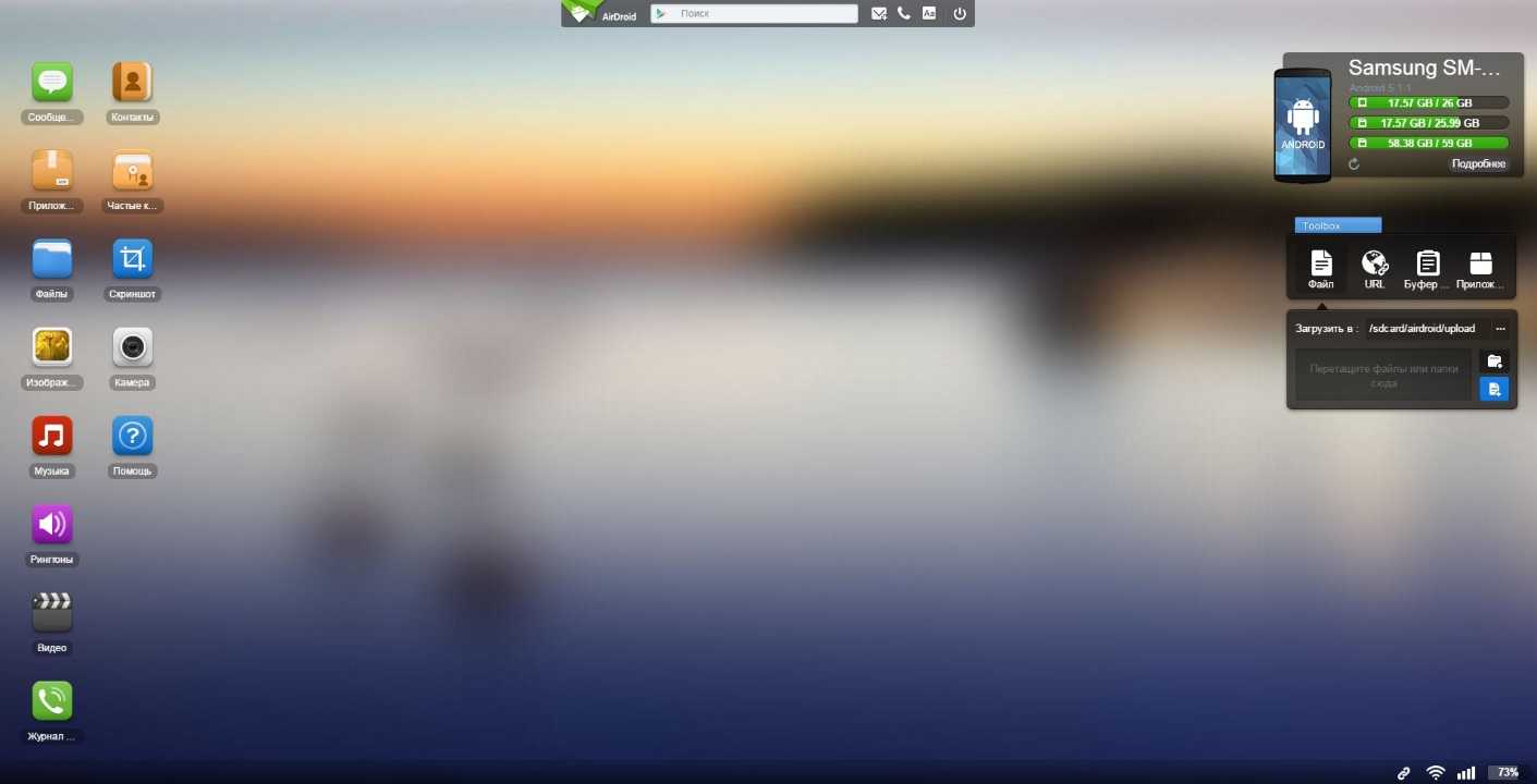 4. Далее вы сможете передавать на компьютер файлы, записывать экран, делать скриншоты и совершать прочие действия. На ПК для этого нужно открыть браузер и перейти по адресу, отображающемуся в верхней строке приложения.