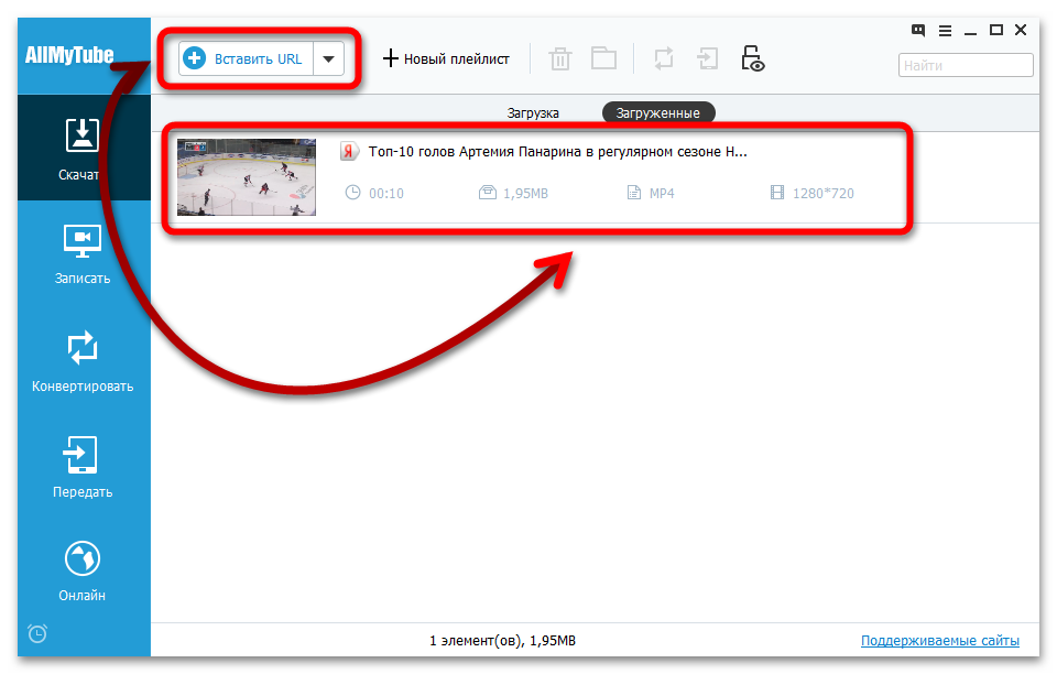 AllMyTube – устанавливаемая программа для компьютера, поддерживающая скачивание с нескольких десятков сайтов. Отличительная черта – наличие встроенного конвертера. Который позволяет одновременно со скачиванием, перекодировать файл в желаемый формат;
