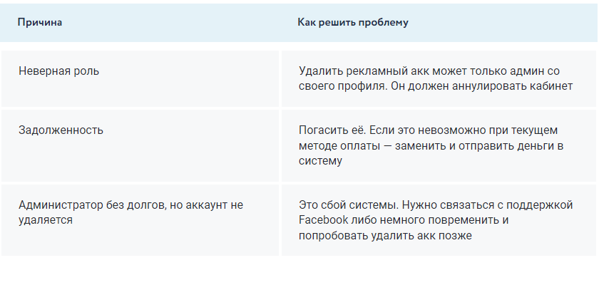 Если решили удалить аккаунт в фейсбук, тогда не забывайте про рекламный аккаунт. Удалить его рекомендуется для тех, кто не собирается пользоваться рекламой в этой соцсети. Отсутствие данных о ваших финансах снижает вероятность хищения средств хакерами. После удаления: