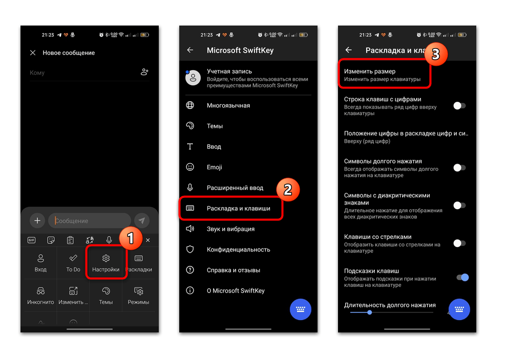 Некоторые производители, например Honor или Huawei, по умолчанию устанавливают другую клавиатуру на свои устройства – Microsoft SwiftKey. Отличительная ее особенность – это многофункциональность и интеллектуальные возможности. Так же, как и в большинстве аналогичных приложений, здесь можно поменять размер раскладки: