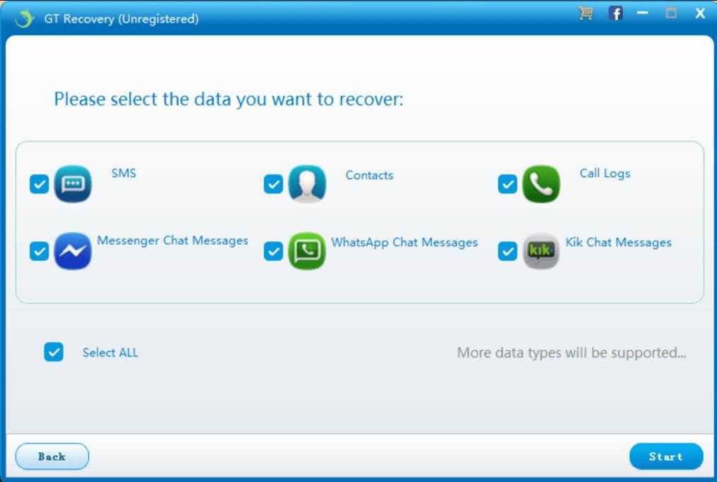 Это достаточно новая программа для восстановления данных на смартфонах под управлением Android (в том числе и на самсунге). Как и ее аналоги – позволяет восстанавливать из памяти аппарата любое удаленное медиа – музыку, видео, СМС-сообщения. Перед началом работы нужно подготовить смартфон – перевести его в режим отладки по USB и подключить при помощи фирменного кабеля к USB-порту. После этого запускаем Gt recovery for windows и выполняем последовательно шаги: