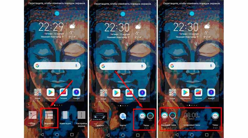 Практически все смартфоны на базе Android имеют встроенные виджеты часов. Чтобы добавить виджет на главный экран, выполните следующие шаги: