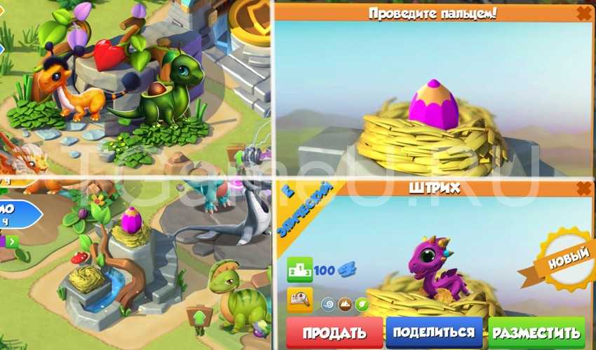 Для начала нужно вырастить пару драконов. Каждому из них необходимо свое жилье. Для повышения числа популяции подопечных придется их скрещивать, чтобы получить новые виды. Для пропитания нужно строить фермы и выращивать на них фрукты.