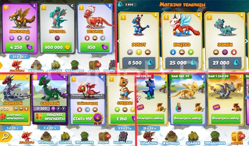 можно купить практически всех остальных драконов, которых можно получить в обычном разведении, боссов и некоторых легендарных. Исключение составляют божественные, которых можно получить только в период проведения акций, выполняя определенные условия.