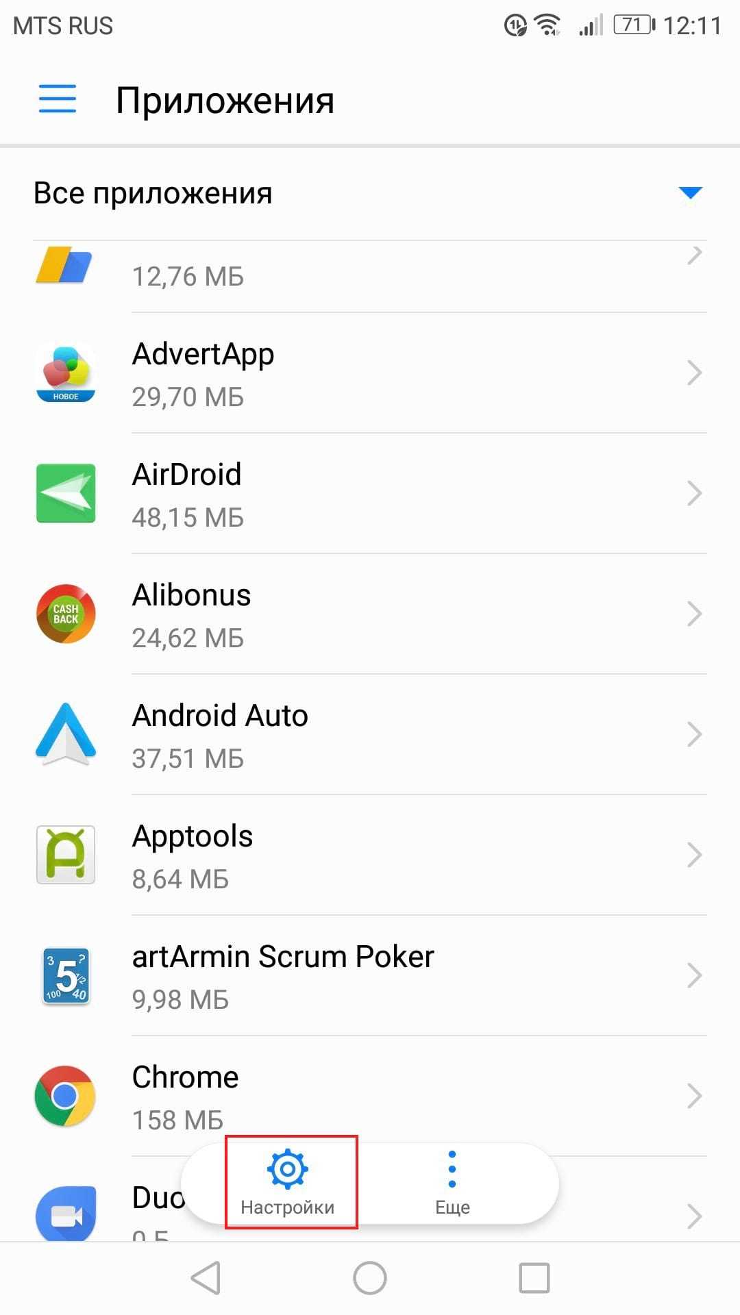 Вернитесь в меню приложений (настройки > приложения) нажмите на значок шестеренки в правом верхнем углу. В моем случае значок шестеренки находится внизу.