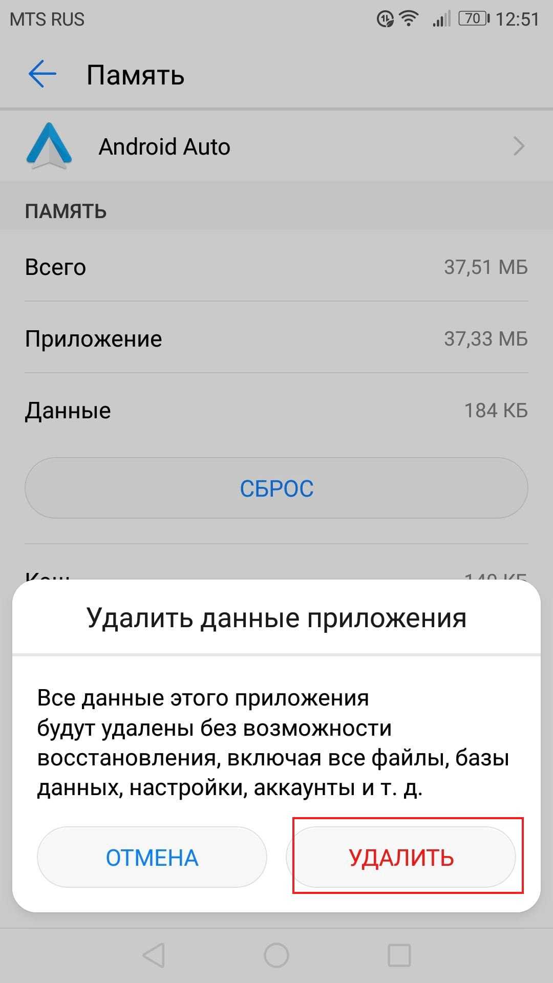 Нажмите «Сброс». Удаляться все настройки приложения, так что по сути Вы будете использовать приложение Android Auto как будто только что его установили.