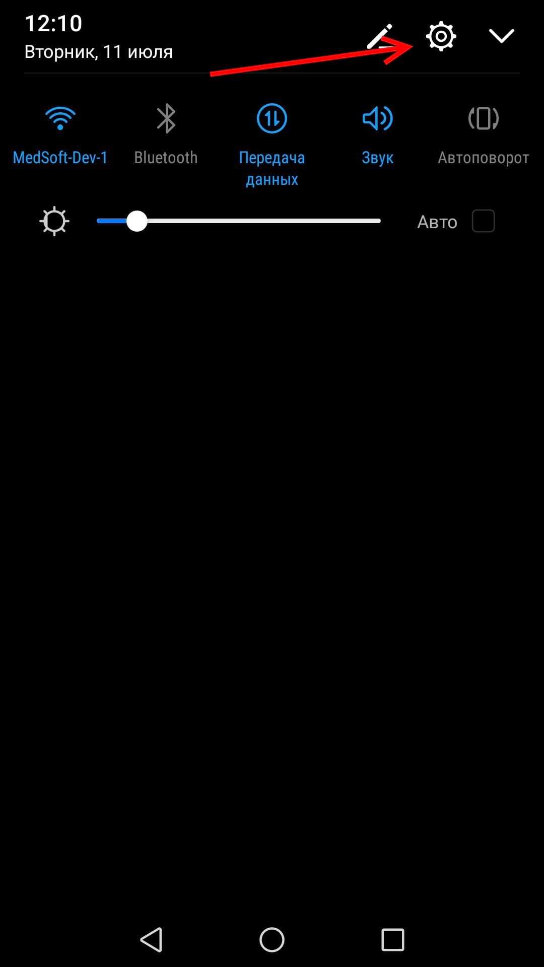 Чтобы проверить разрешения, перейти в меню настроек. Потяните вниз панель уведомлений и нажмите на значок шестеренки.