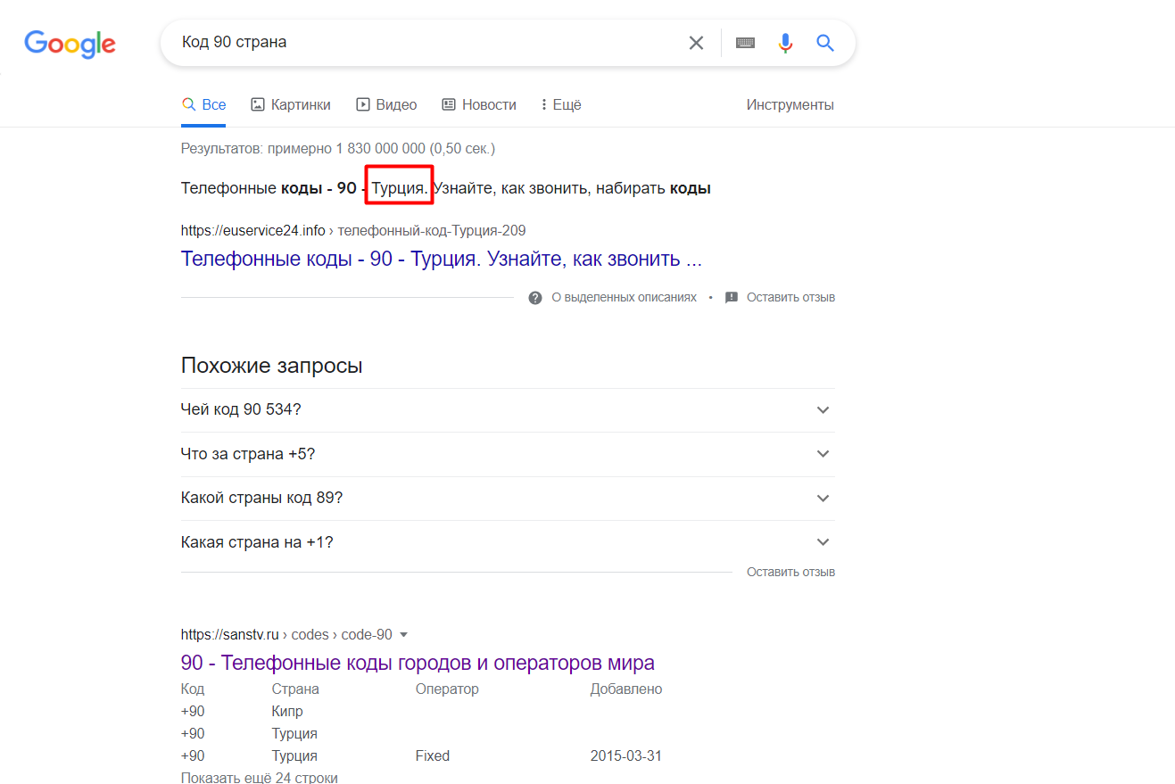 - В выдаче в первых же списках будет указана страна, которой принадлежит номер.
