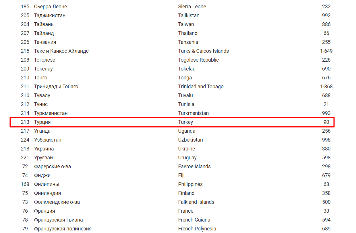 В Турции используются также коды 533, 534, 535, 536, 537, 538, 539, которые принадлежат местным операторам связи. Если вы пытаетесь определить, из какой конкретно страны вам звонят, то учитывайте эти коды.