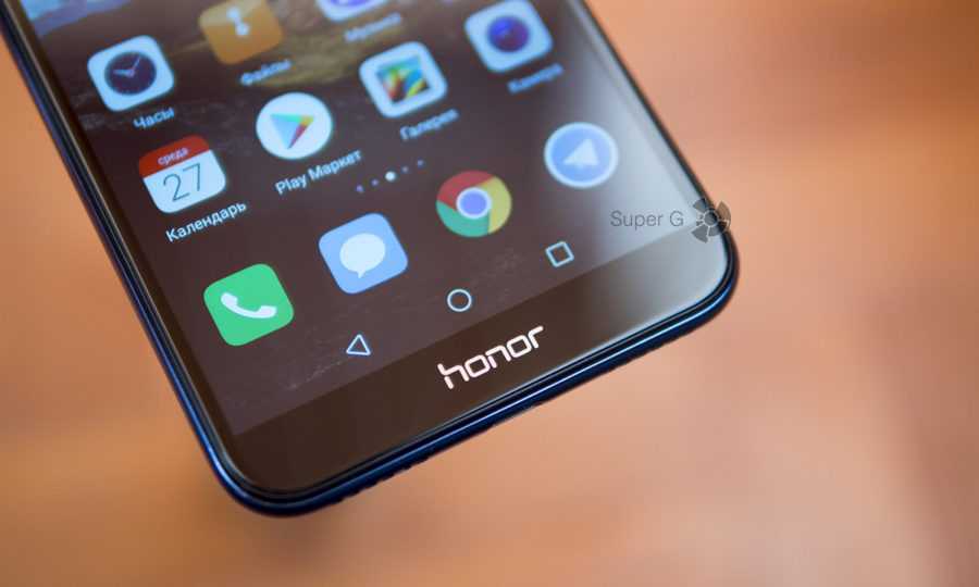 Под экраном нет никаких кнопок или других элементов. Вместо них надпись Honor. Функциональные клавиши полностью интегрированы в экранную оболочку Android 8.