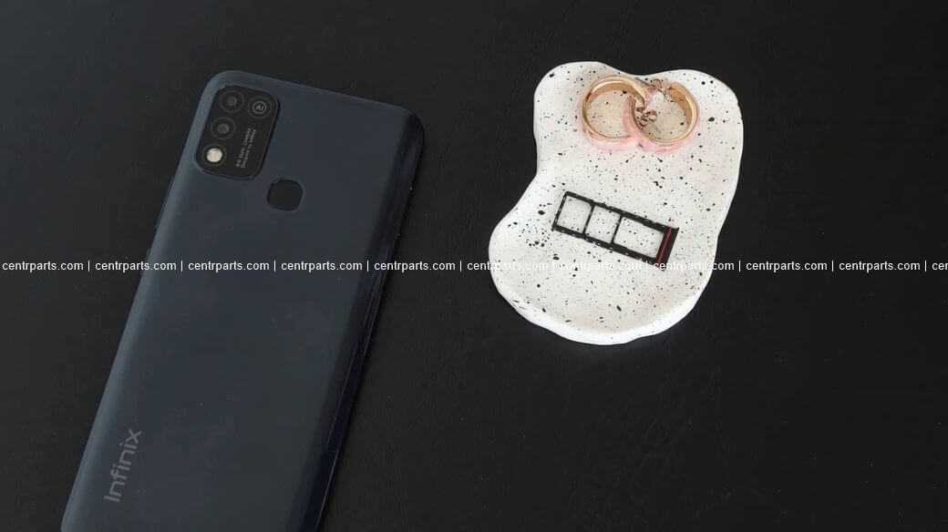 Окей, на правом торце корпуса смартфона Hot 10 Play имеется кнопка включения и качелька регулировки громкости. А вот на левой стороне расположился отдельный слот для двух нано СИМ карт и карты памяти MicroSD формата. Также на слоте можно заметить резиновое уплотнение, чтобы лишняя влага или вода не попала внутрь смартфона.