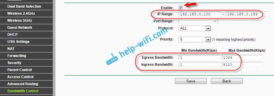 Теперь, при подключении устройства будут получать IP-адрес из диапазона который задан в настройках DHCP сервера, и к ним будет применено правило, которое мы создали в настройках управления пропускной способностью.