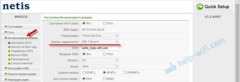 Там будет меню «Диапаз. радиочастот». В нем можно сменить стандарт Wi-Fi сети. По умолчанию установлено «802.11 b+g+n».