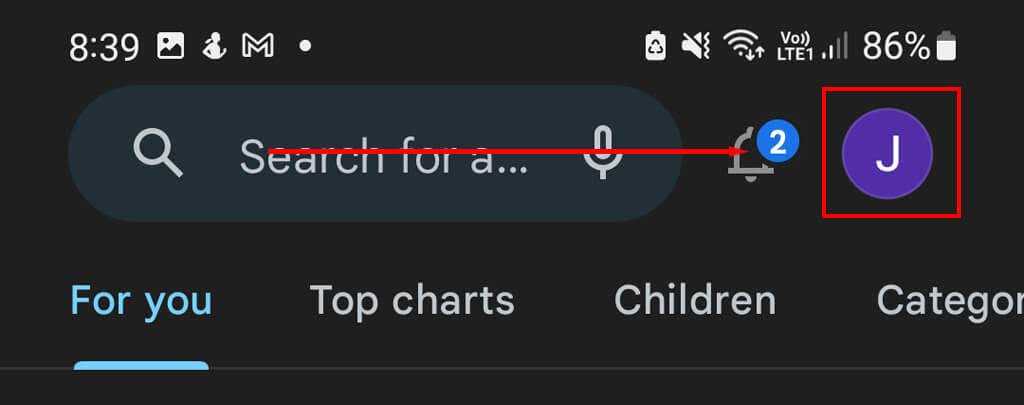 - Коснитесь значка своей учетной записи в правом верхнем углу.