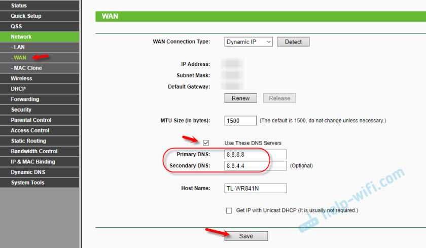 После этого, все устройства которые подключены к этому маршрутизатору будут использовать установленные DNS адреса.
