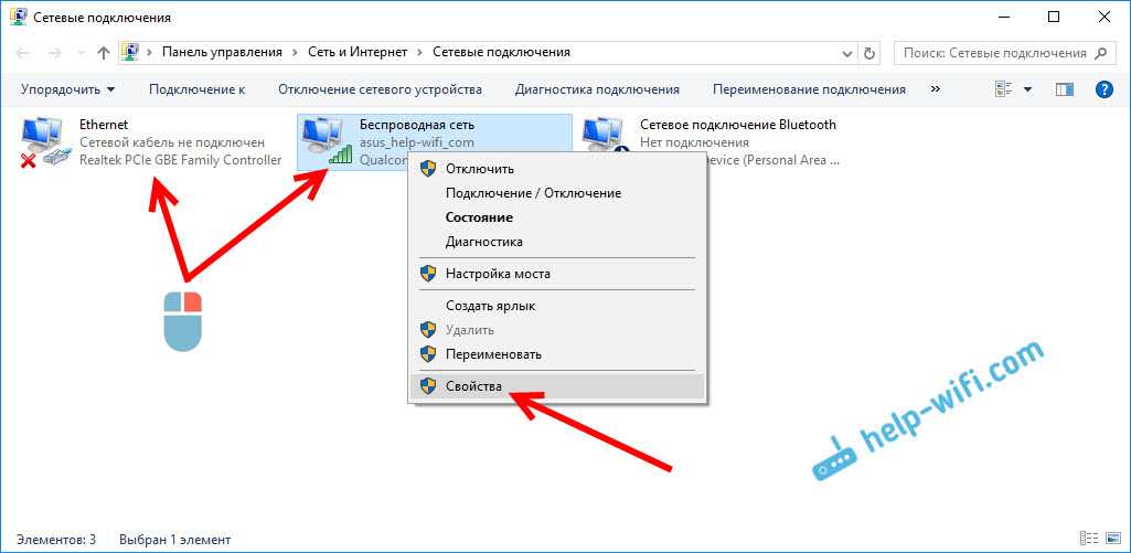 Нажимаем правой кнопкой мыши на тот адаптер, через который у вас подключен интернет и выбираем Свойства.