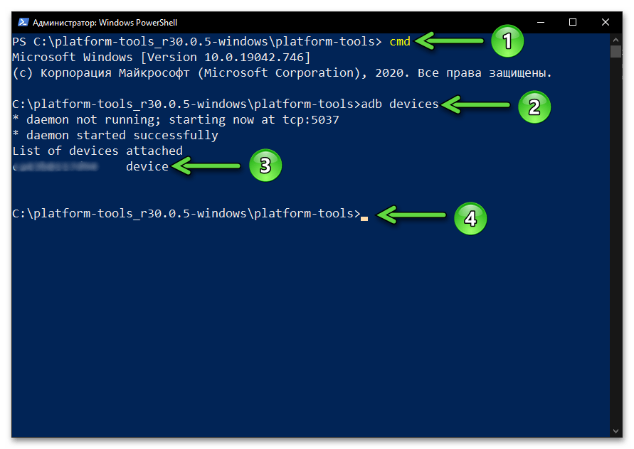 Когда ваше Андроид-устройство переведено в режим «Отладка по USB» или «FASTBOOT» и сопряжено с Windows-компьютером, перезагрузка осуществима путём передачи с десктопа в мобильный аппарат одной из специализированных консольных команд. Алгоритм действий при таком подходе в общем случае выглядит следующим образом: