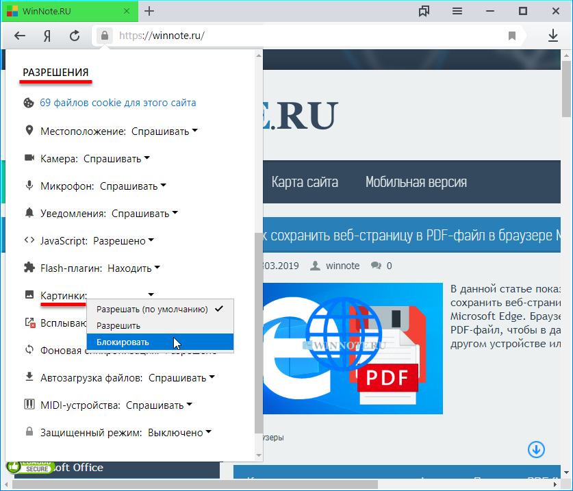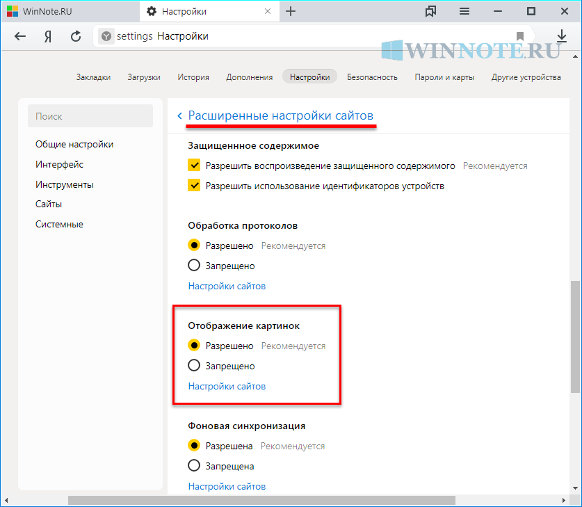 Как отключить или включить отображение картинок для определенного сайта в Яндекс.Браузере
