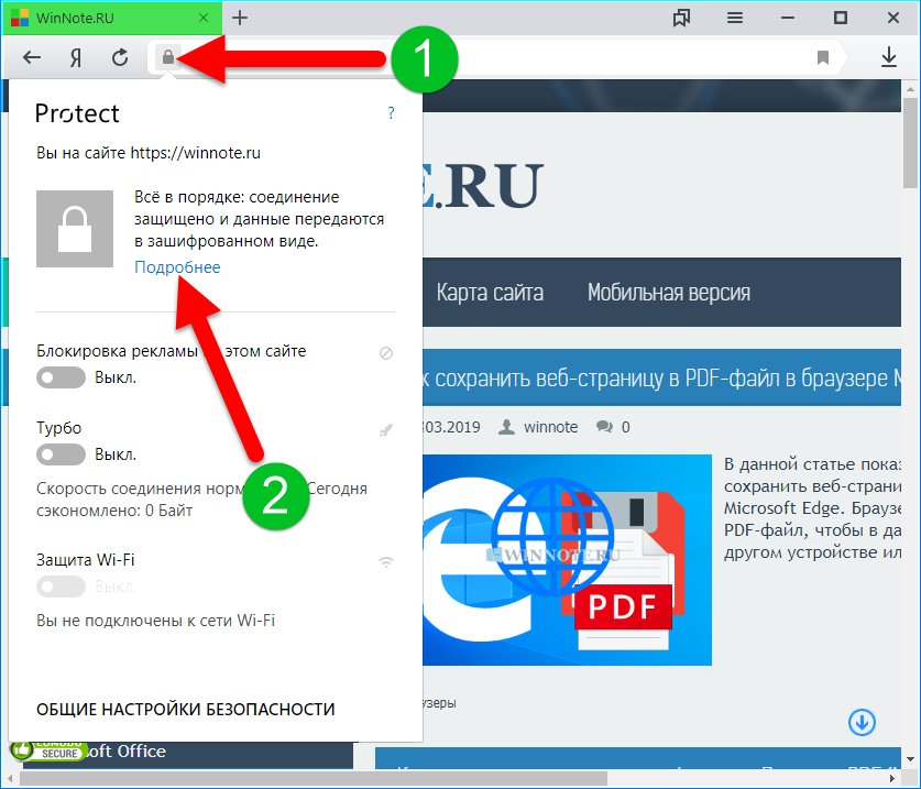 Также можно отключить или включить отображение картинок для определенного сайта, для этого откройте страницу нужного веб-сайта, нажмите на значок или слева от адресной строки и в появившейся панели «Protect» нажмите Подробнее