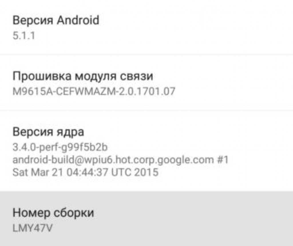 - В конце списка с данными о вашем устройстве найдите пункт «Номер сброки» (для некоторых телефонов, например, MEIZU — «Версия MIUI»).