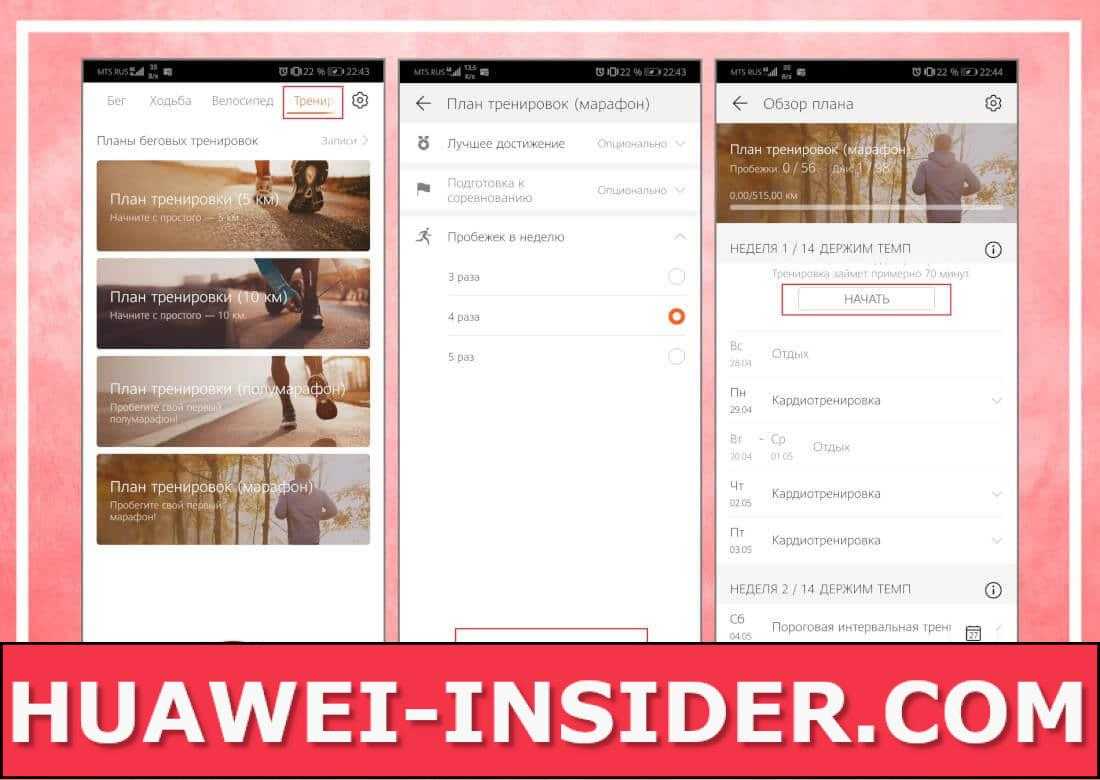 Вид тренировки выбирается во вкладке «Упражнения». Там вы можете просто начать тренировку по ходьбе или бегу. Весь прогресс занятий будет виден в приложении. Если у вас есть браслет, то вся информация будет поступать еще и с него. Какой-либо серьезной инструкции к выбору вида тренировок нет.