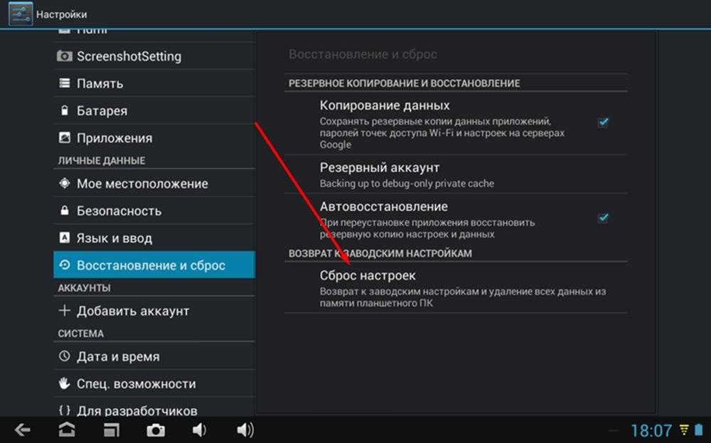 - Выбираем пункт «Сброс и восстановление», на разных устройствах он может называться по-разному и находиться либо в самом меню настроек, либо в пункте «Система».