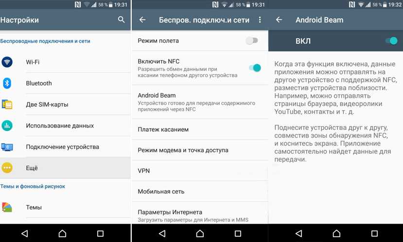 - Настройки -> Беспроводные сети и соединения -> NFC