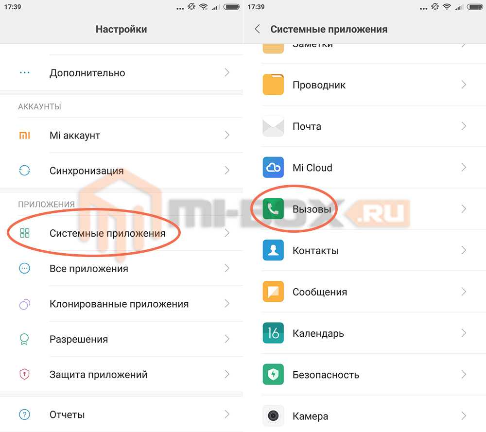- Открыть “Настройки” и перейти в подразделы “Приложения”/”Системные приложения” => “Телефон”/”Вызовы”.