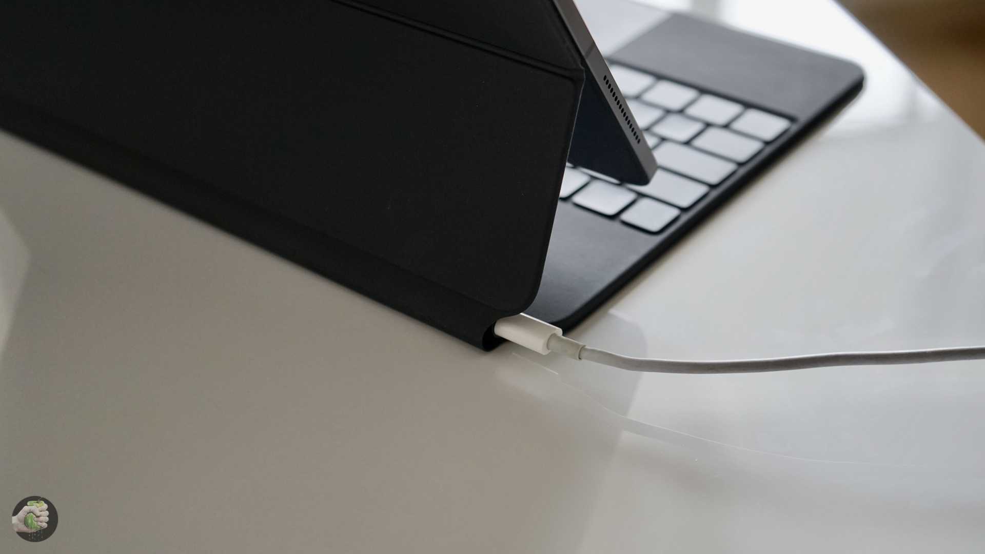 С одной стороны, от дополнительного кабеля USB-C на USB-C никто бы не отказался. С другой, он есть у каждого владельца iPad Pro. Своего аккумулятора у аксессуара нет, отдельно заряжать его не надо. Планшетник сам передаёт питание на чехол.