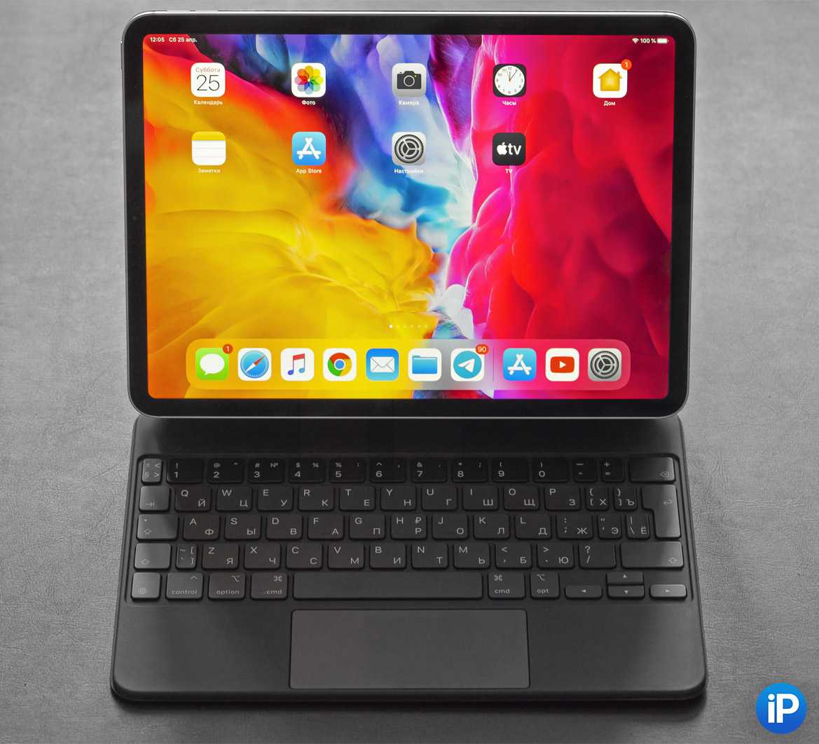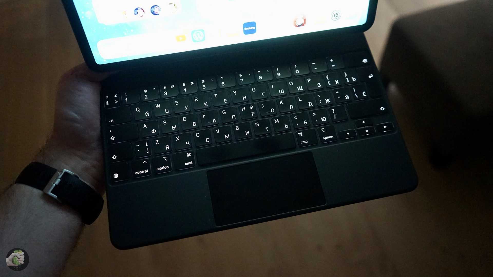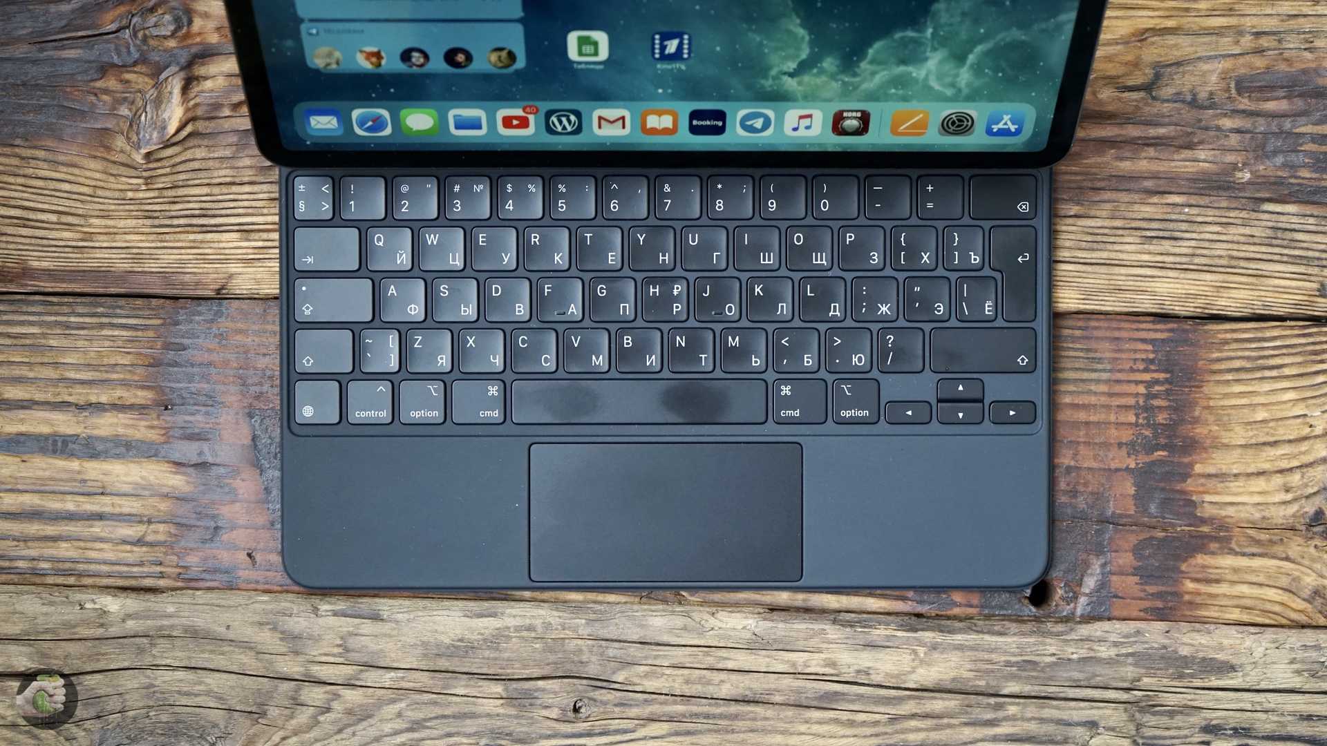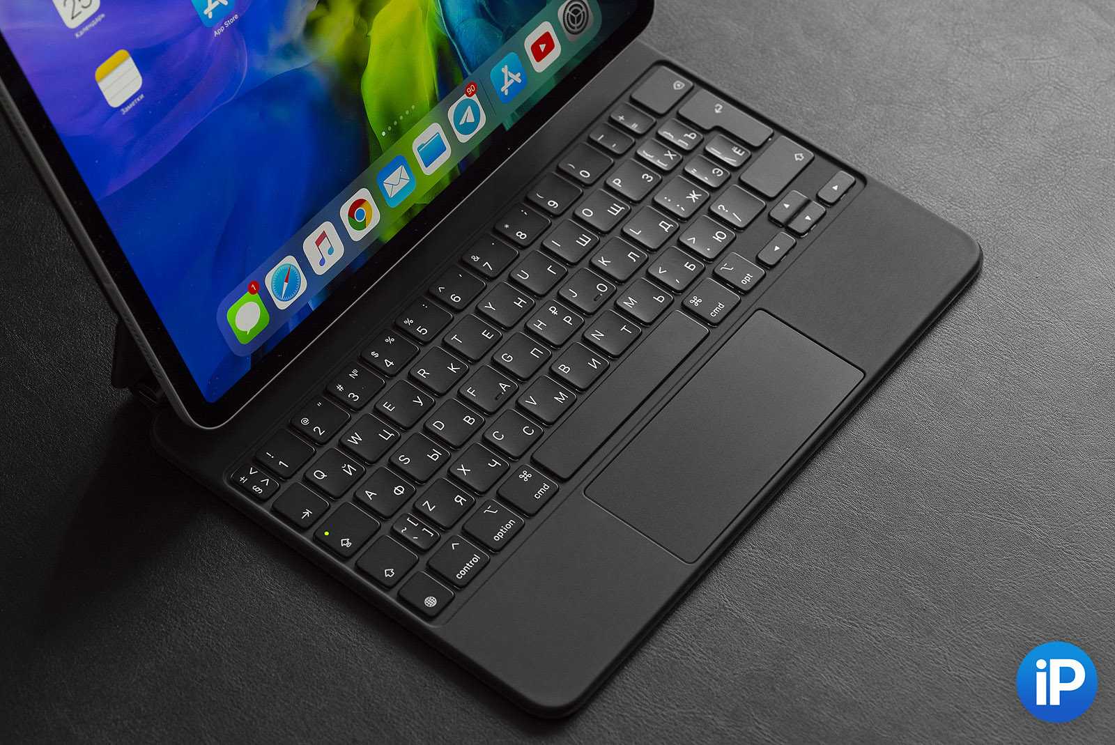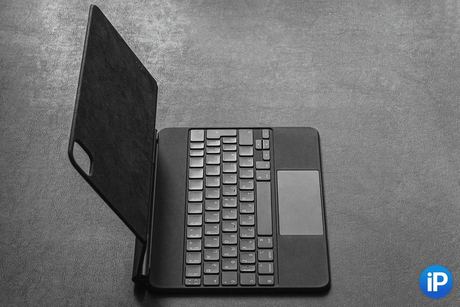 Расположение тачпада под клавиатурным блоком типично и знакомо владельцу любого ноутбука. Поэтому в таком формате получается интуитивно работать в iPadOS – ничуть не хуже, чем, скажем, на каком-нибудь MacBook Pro.
