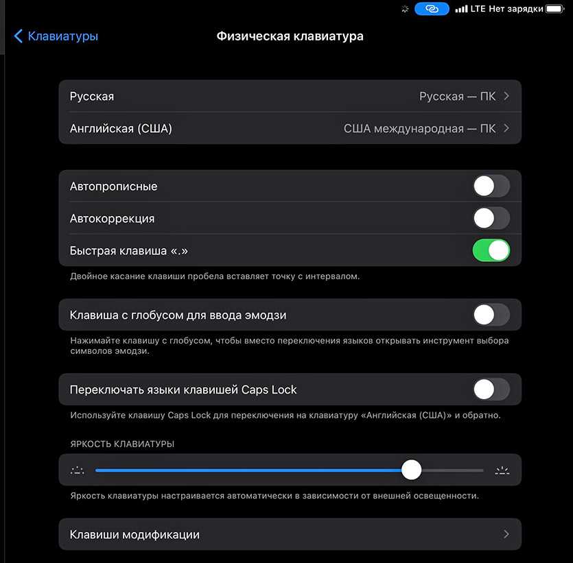 ▹ Не нравится малое количество настроек для чехла. Я бы очень хотел, чтобы в iPadOS наконец-то разрешили менять сочетание клавиш для смены раскладки. ОЧЕНЬ! В Купертино этот вопрос вряд ли многих волнует, английский ведь и все дела…