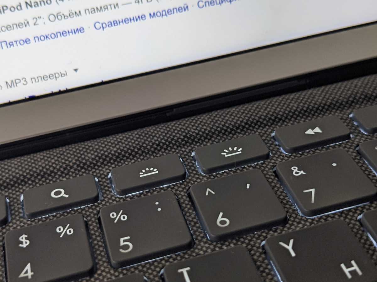 Все сочетания клавиш повторяют сочетания macOS, перестроиться было легко. Верхние кнопки «забиты» под определенные функции: например, уменьшить/увеличить яркость экрана, вернуться домой, открыть поиск, переключить трек и изменить громкость.