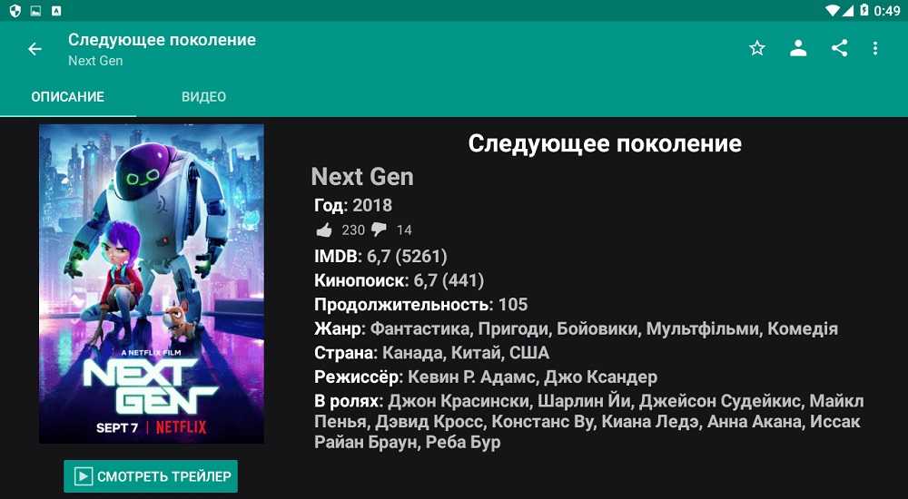 Нашли интересовавший вас фильм? Просто кликните по его миниатюре, после чего откроется страница с детальным описанием сюжета фильма. Здесь же приводится текущий рейтинг IMDB/Кинопоиска и все остальные сведения: страна производства, актёрский состав и прочие сведения. Обычно на этой же странице доступен трейлер и часто – галерея с миниатюрами кадров из фильма.