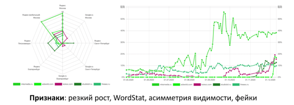 Ситуация с накруткой на конец 2020 года была проблемой. Волна санкций за накрутку поведенческих факторов замечена 1 сентября, эту ситуацию мы уже подробно разбирали в наших предыдущих статьях и вебинарах.