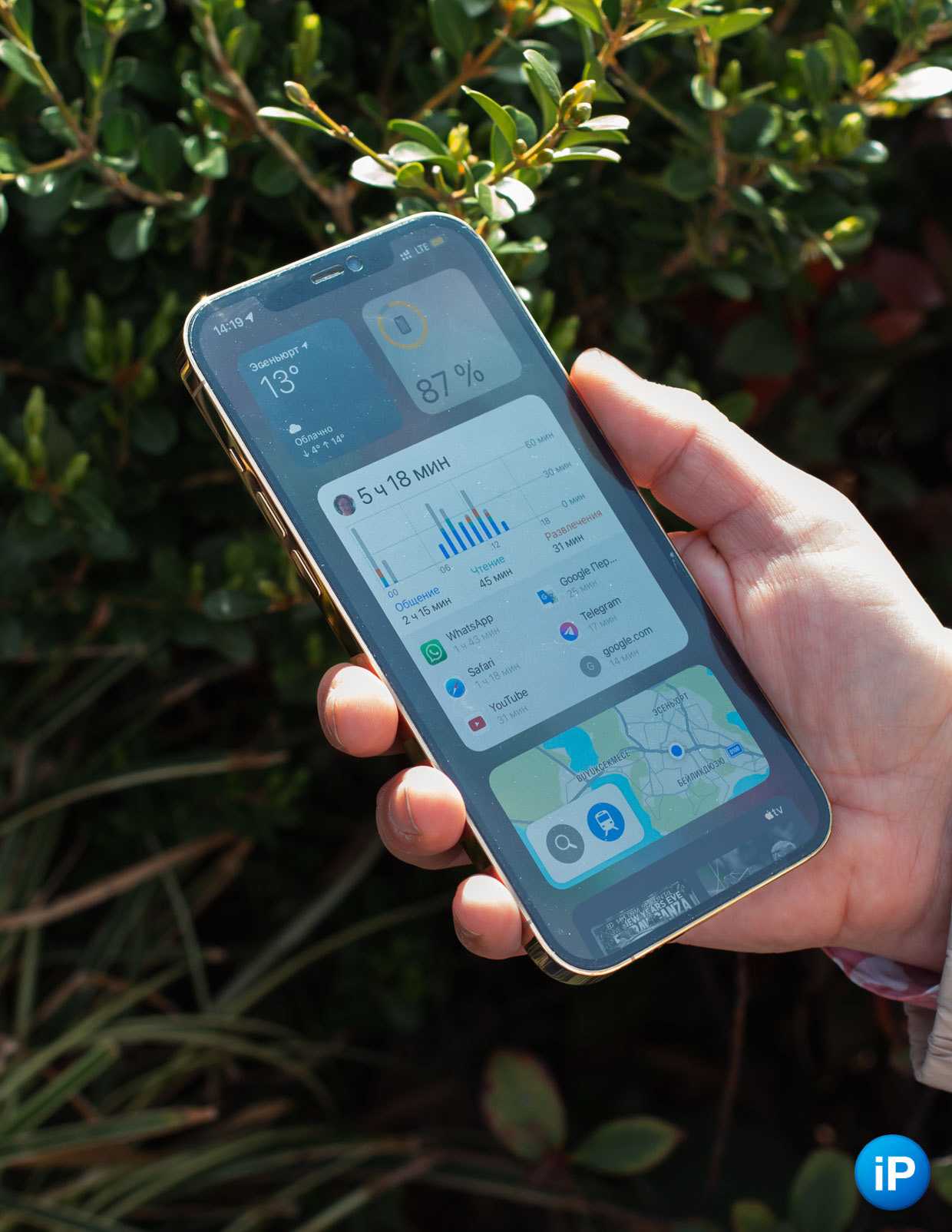 Но радость сменилась разочарованием — и всё из-за показателей автономности. У меня большой iPhone 12 Pro Max работает столько же, сколько и iPhone 12 или iPhone 13 Pro. Отсюда и следует заключение: зачем привыкать к неудобным размерам, если те же результаты выдают устройства более комфортного формата?