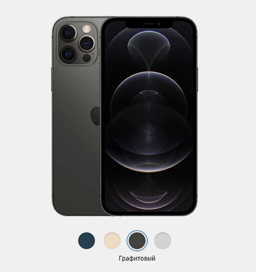 Графитовый цвет в новых iPhone 12 Pro и Pro Max это по сути все то же «серый космос» предшественников. Графитовый немного темнее «серого космоса», при определенном освещении приближается к черному. Минусы черного цвета, несмотря на матовое заднее стекло, — сильнее видны отпечатки пальцев, царапины и потертости.