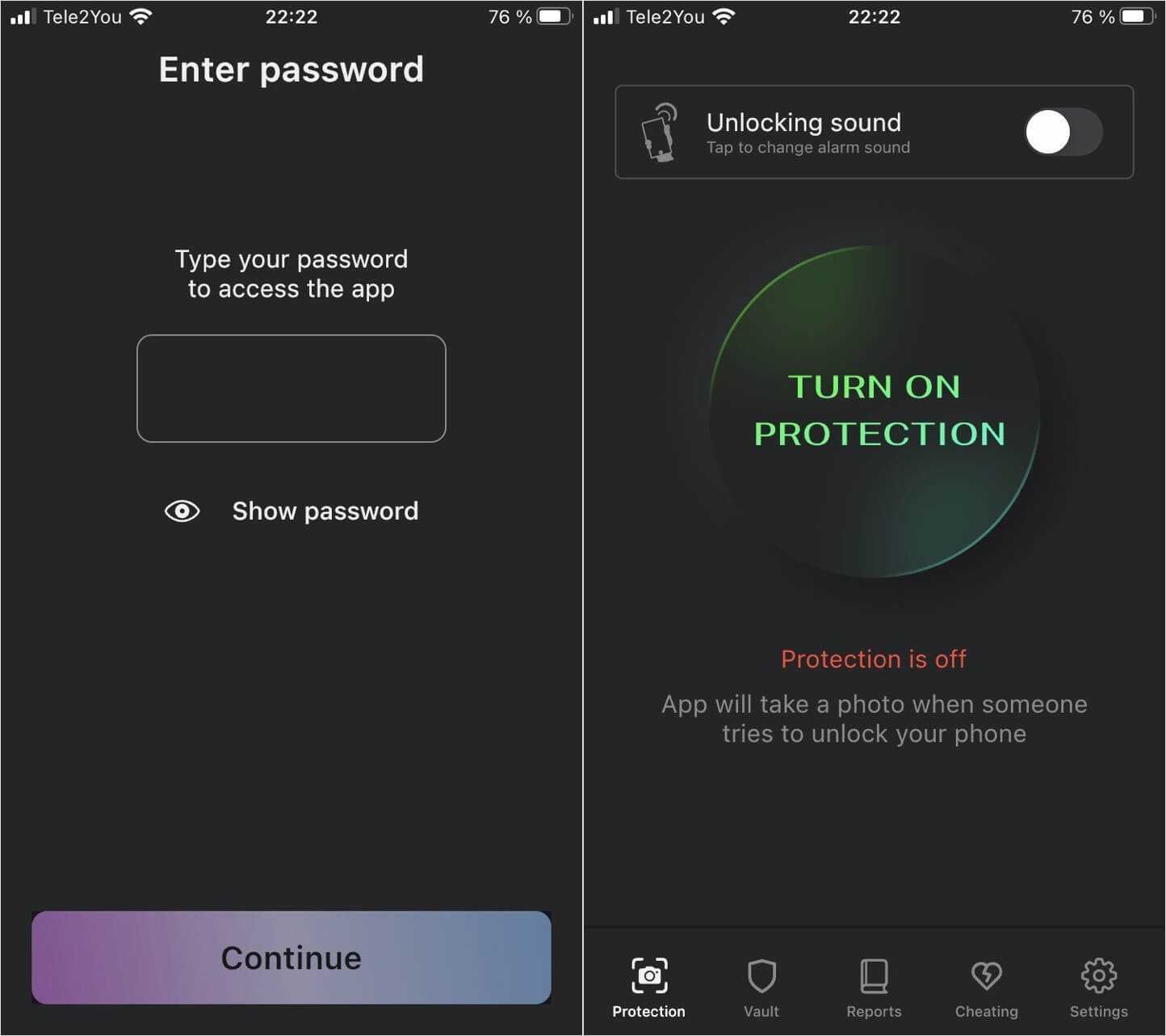 Когда кто-то зайдет в телефон, приложение сделает фотографию, и сохранит ее. Все данные и отчеты утилита оставляет в папке «Report». Стереть папку можно только введя пароль от программы, или совместно с ее удалением. В отличие от одноименного конкурента, данная программа при фотографировании подсвечивает экраном, чтобы лучше заснять нежданного гостя в темноте. Интересный факт — камера делает снимок сразу после активации телефона, и у «нарушителя» нет возможности закрыть или свернуть утилиту. И когда человек не ожидает подвоха, то вряд ли успеет спрятать лицо.