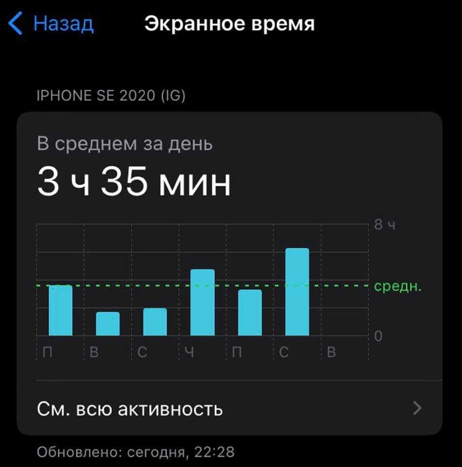 Для проверки телефона, вам важно, чтобы Экранное время работало, чтобы отделить ваше пользование от посещения смартфона другими личностями. Если вы думаете, что кроме вас, телефоном пользуются другие, то следует открыть раздел Экранное время