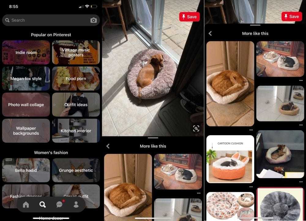 Точно так же Pinterest — отличное приложение для распознавания объектов, которое после фотографирования выбирает ссылки и страницы для распознаваемых объектов. Решение Pinterest также может объединять несколько предметов в сложное изображение, например одежду, и предлагать вам приобрести предметы, если это применимо.