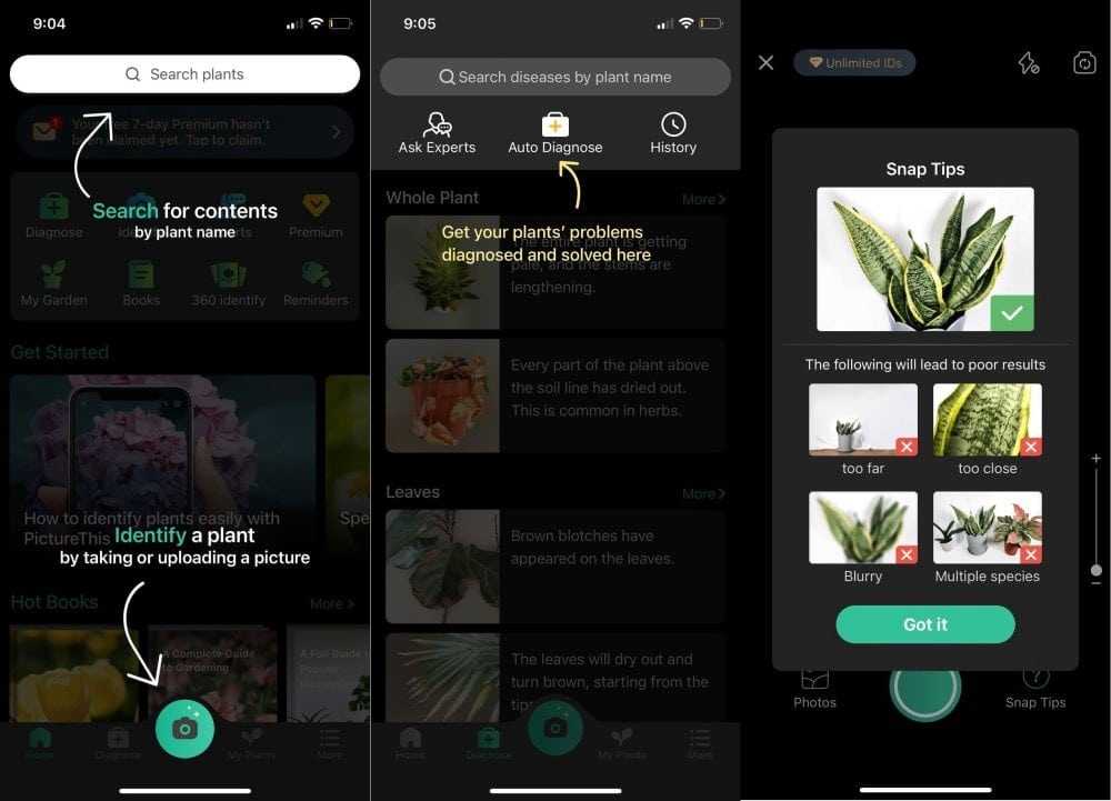 Использовать это приложение очень просто. Сфотографируйте растение, которое вы хотите заметить, и позвольте PictureThis сделать всю работу! Он предоставит вам название растения и всю необходимую информацию, включая потенциальных вредителей и болезней, советы по поливу и многое другое! Приложение также предоставляет вам напоминания о поливе и возможность связаться со специалистами, которые помогут вам диагностировать больные комнатные растения. Вы также можете проверить Лучшие приложения для садоводства и сельского хозяйства для Android и iOS.